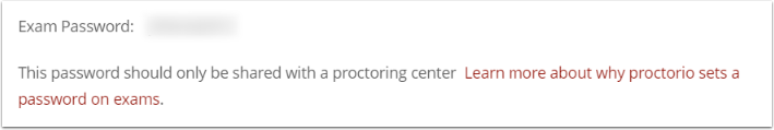 With your override saved, you’ll see an exam password with instructors to share this only with the test’s proctor. (For privacy, the exam password has been blurred in the image below.)