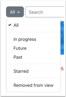 You can change what courses you see by opening the view menu and clicking a different option. The default option, “All,” shows you every course you have access to. But there are other views, such as: