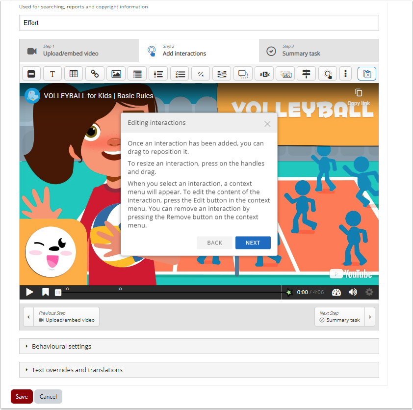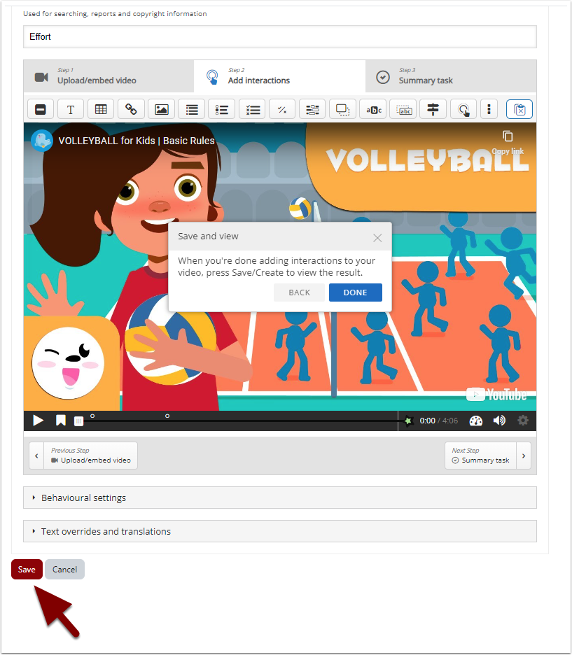 On the “Summary task” tab you can also adjust the video play settings and text used in the content.
