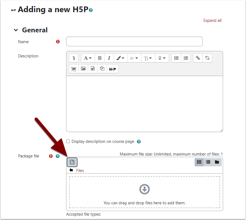 Click on “Select this file” to add it. Save and return to course.