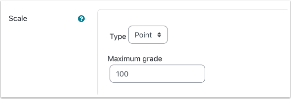 Next, under “Scale,” choose “Point” as the “Type” and then set a “Maximum grade” for your forum (default is 100 points). This is the maximum points students can earn for this activity.