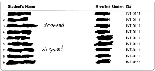 If you dropped students at a prior date, but their name appears on this list, write drop next to the name with the date dropped.