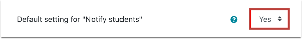 You can set Notify students to Yes if you want students to receive a Moodle notification when you record a grade for this forum. However, changing this only sets the default. When you submit a forum grade for a student, you can choose whether to send a notification or not.
