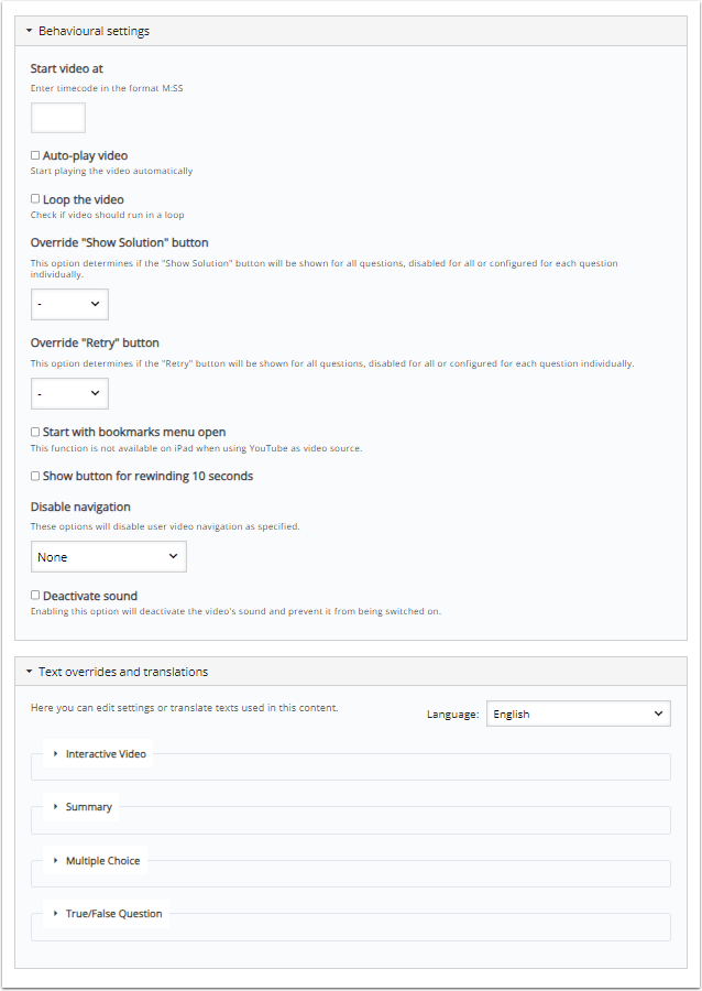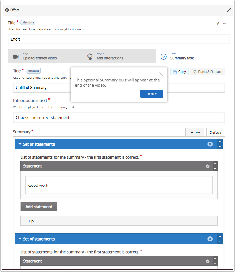 On the “Summary task” tab you can also adjust the video play settings and text used in the content.