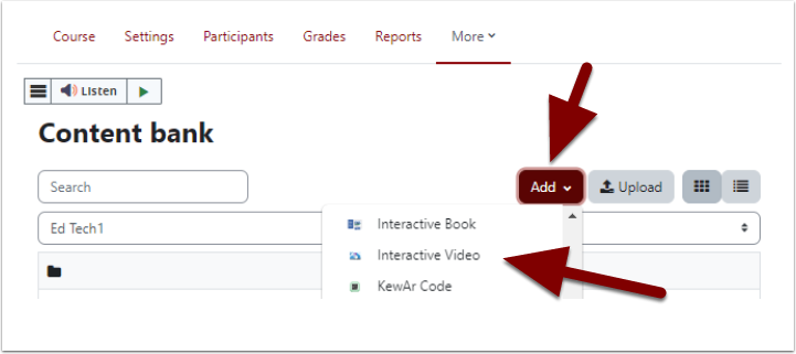 Click on the the “Add” button, scroll down, and select “Interactive Video.”