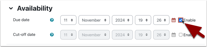 Explore some of the other settings on this page. If nothing esle, it is recommended that you also set up a due date for your forum in the “Availability” section. Select the “Enable” box next to the Due dates date field and enter a date. Enabling due dates gives students another way to track their activity within the course.