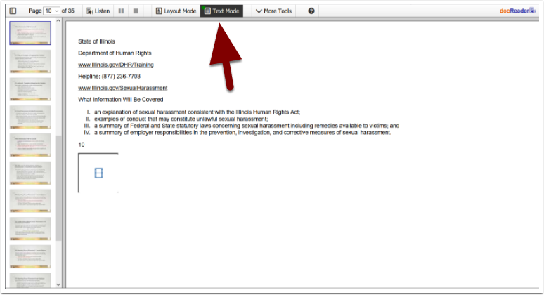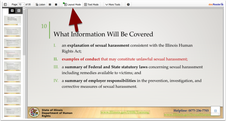 After clicking the icon, the document will open online in Docreader in Layout Mode — Layout Mode preserves the document’s format and design.