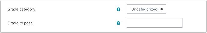 Grading category and Grade to pass are settings that effect how all grades appear in the gradebook. Check out articles in the gradebook category for more information.