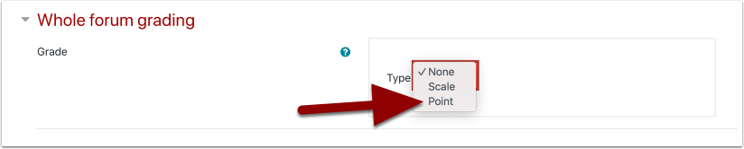 It is important to note that you do NOT use the Ratings section when you set up your forum for Whole forum grading. Just leave Aggregate type in that section set to No ratings.