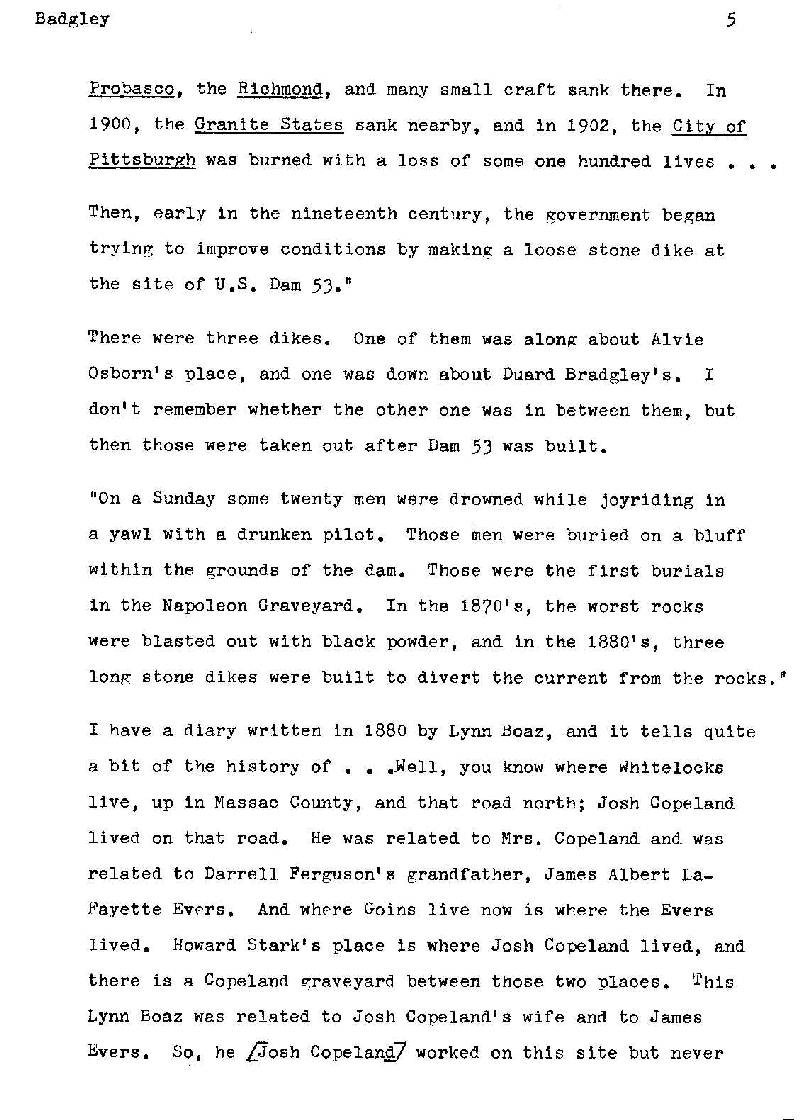 Home » Library » Local History Project » Glenna Badgley, Interviewed by Kathy Blasdel (11 Pages)Glenna Badgley, Interviewed by Kathy Blasdel (11 Pages)History of Cantonment Wilkinsonville.